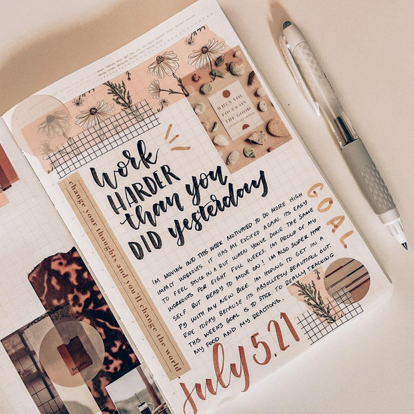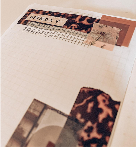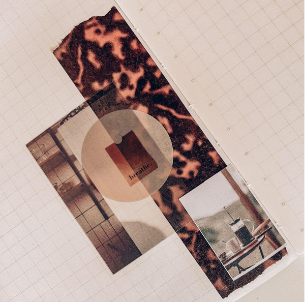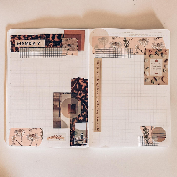 For this spread I loved the neutral vibes of the washi tape I chose, so I kept that color scheme in mind for the rest of my collages. I love the way that using different shaped stickers and sticky notes can transform an entire spread and give it so much character. I always spend a few moments admiring my spreads before the pen!