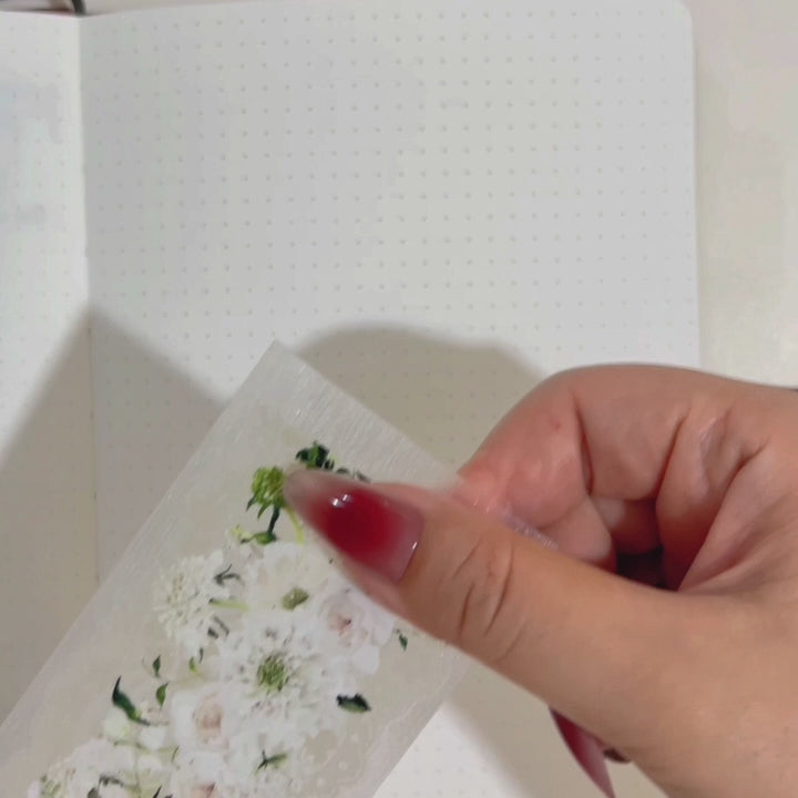 The Petals en Blanc Bundle brings together two of our most graceful floral tapes—Fleur de Lune and Petals en Blanc. Expect dreamy daisies, summer blooms, sparkling accents, and delicate lace underlays. With every pre-cut piece, your journal transforms into a soft, romantic vignette of elegance and calm.