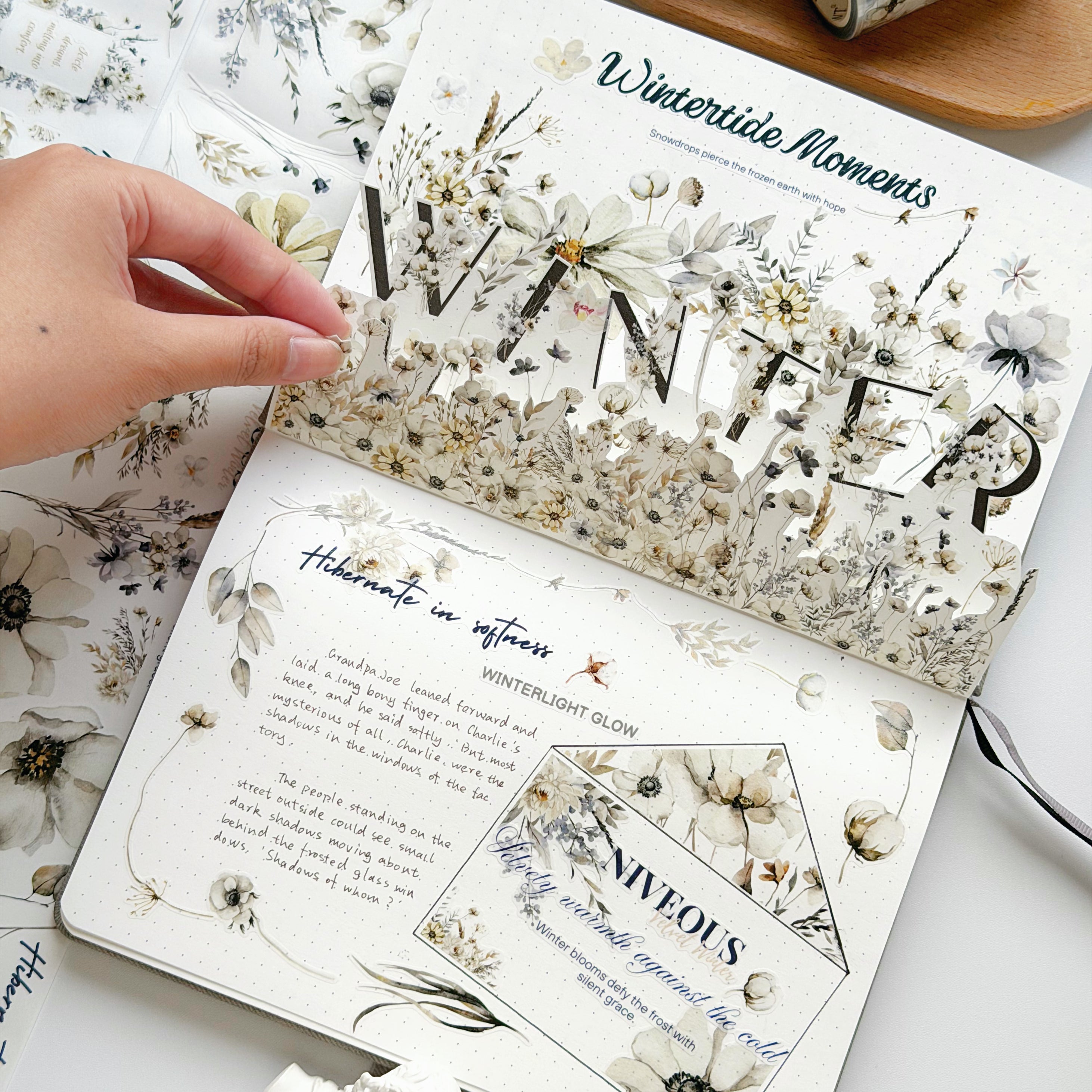 For creators who love crisp, clean winter aesthetics, the Pre-cut Frosted Meadow Bundle offers the perfect monochrome pairing. Frosted Meadow adds delicate white florals, while Frosted Letters layers in subtle typography and quotes for depth. The pre-cut format keeps layouts precise and effortless—ideal for planners, month covers, scrapbooks, and minimal holiday stationery. A must-have duo for sophisticated winter crafting.
