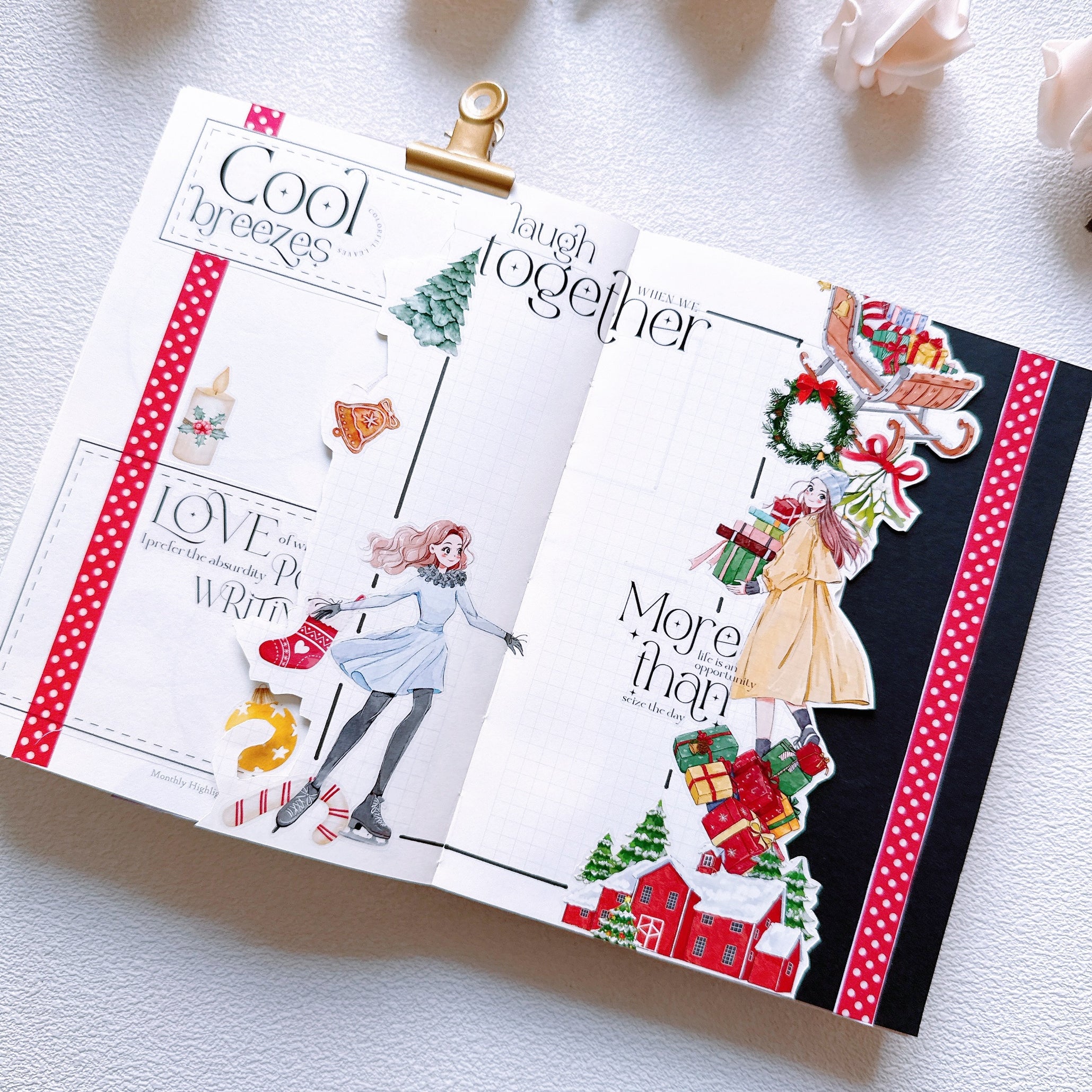 Step into a lively winter wonderland with our Pre-cut Snowy Strolls Wide Washi/PET Tape. Filled with hand-painted characters snowboarding down frosty hills, ice skating beneath twinkling lights, and enjoying cozy outdoor fun, this tape captures the cheerful spirit of winter at its brightest. Each pre-cut scene brings movement, joy, and a touch of Christmas magic to your planner spreads and holiday crafts. Perfect for anyone who loves winter adventures and warm, festive energy.